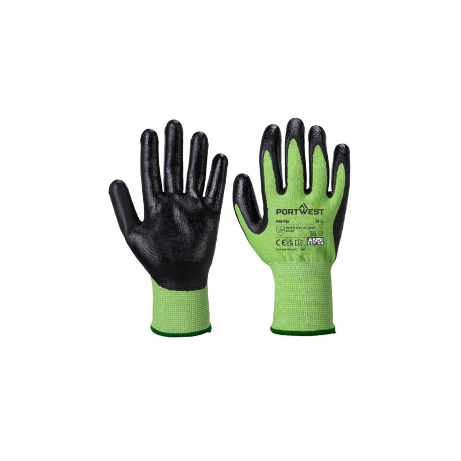 The A645 Green Cut Glove is designed for professionals who need high-level cut resistance, durability, and enhanced grip in both wet and dry conditions. Featuring Level D cut protection (EN388:2016) and an ergonomic 13-gauge liner, this glove ensures precise fitting while offering superior dexterity. The nitrile foam coating provides outstanding grip, making it ideal for handling sharp materials in industrial and construction settings.