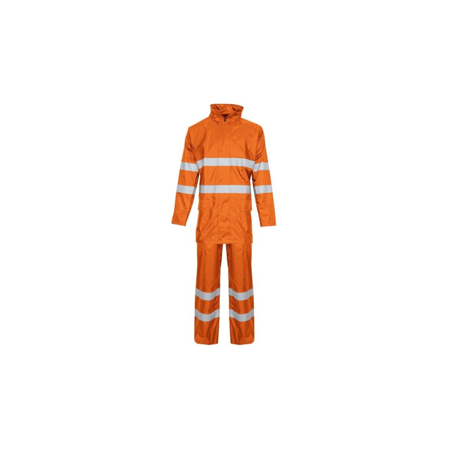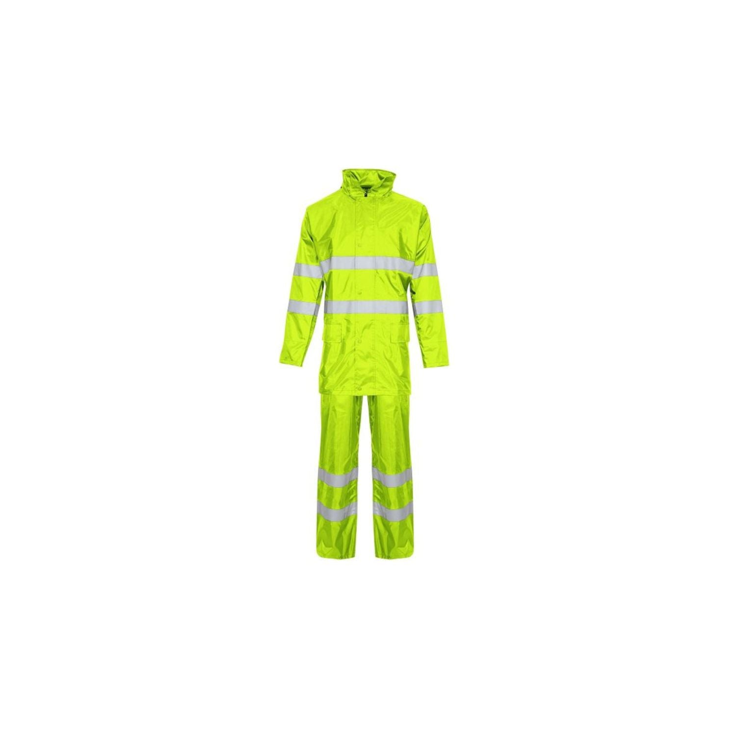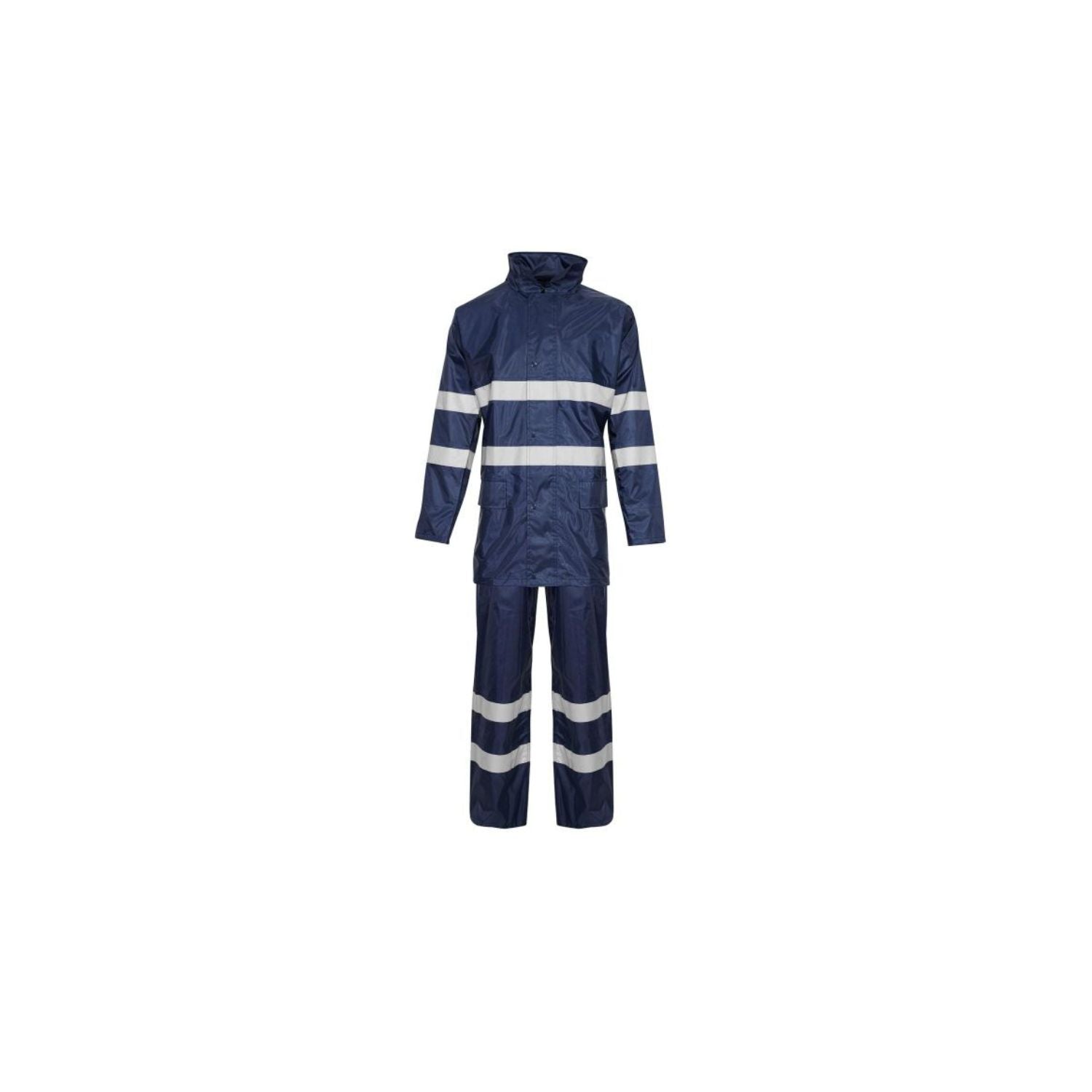 - High Visibility: Reflective bands on jacket and trousers
