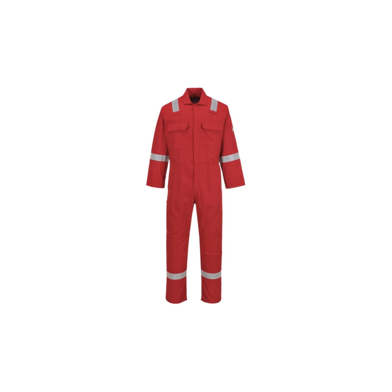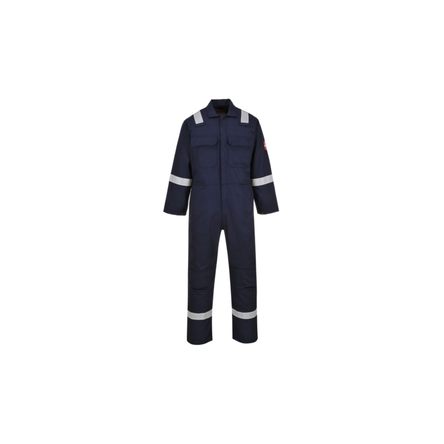 - Flame-Resistant Reflective Tape: Positioned on shoulders, sleeves, and legs for improved visibility in low-light conditions.